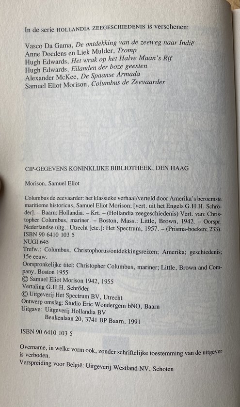 Columbus de zeevaarder : het klassieke verhaal, verteld door Amerika’s beroemdste maritieme historicus