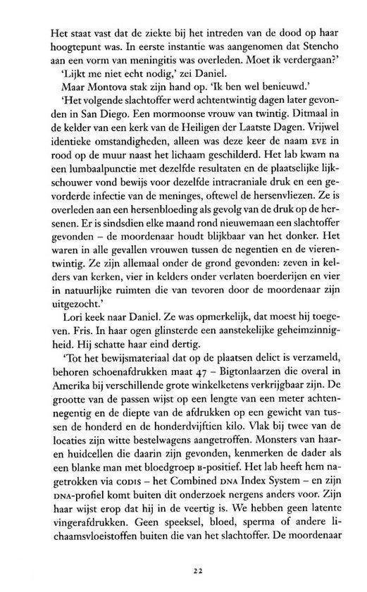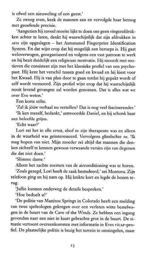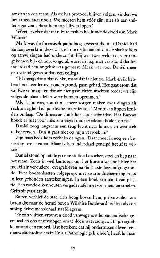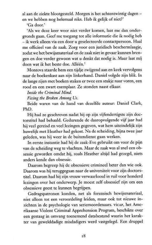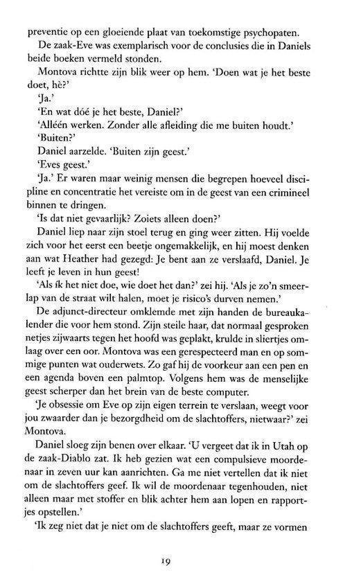 Special agent en gedragspsycholoog Daniel Clark jaagt op Eve met een felle, bijna obsessieve verbetenheid. Na een heftige confrontatie met de moordenaar, die net niet fataal afloopt, krijgt Daniel hulp uit onverwachte hoek. Samen met forensisch patholoog Lori Ames doet hij een schokkende ontdekking. Maar als je op de duivel zelf jaagt, hoe ver kun je dan gaan?