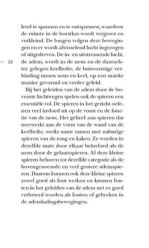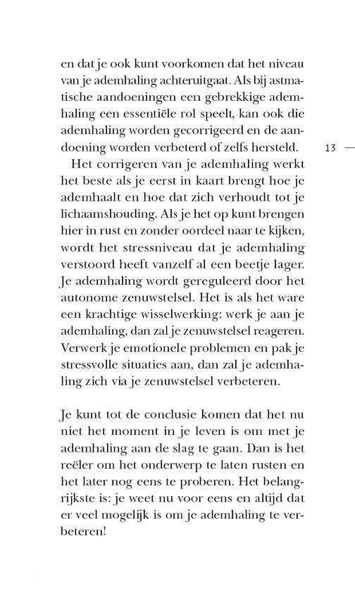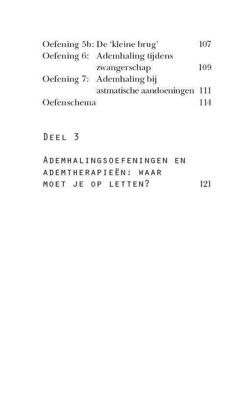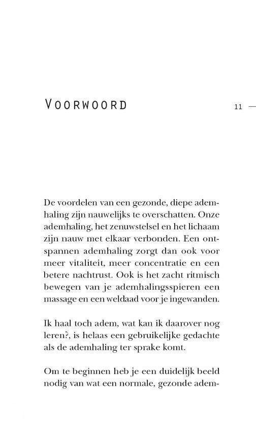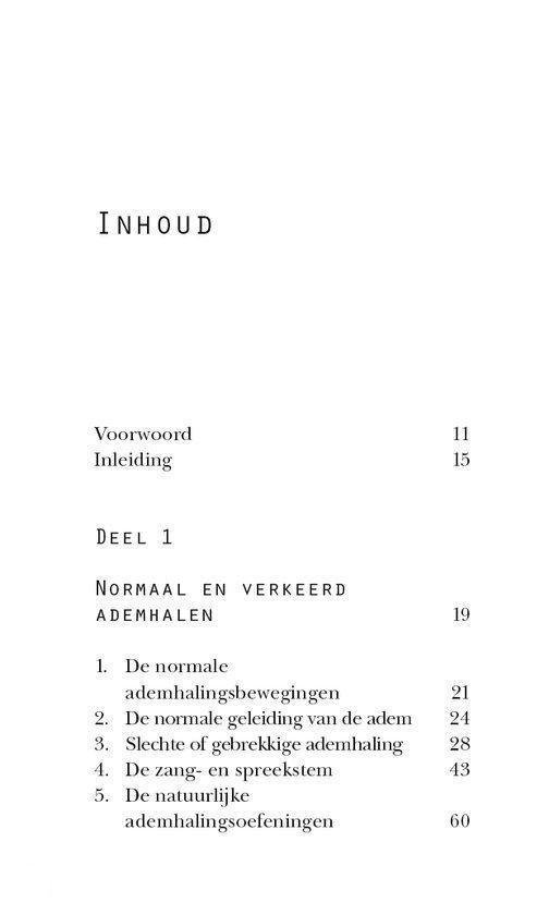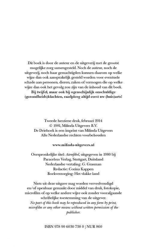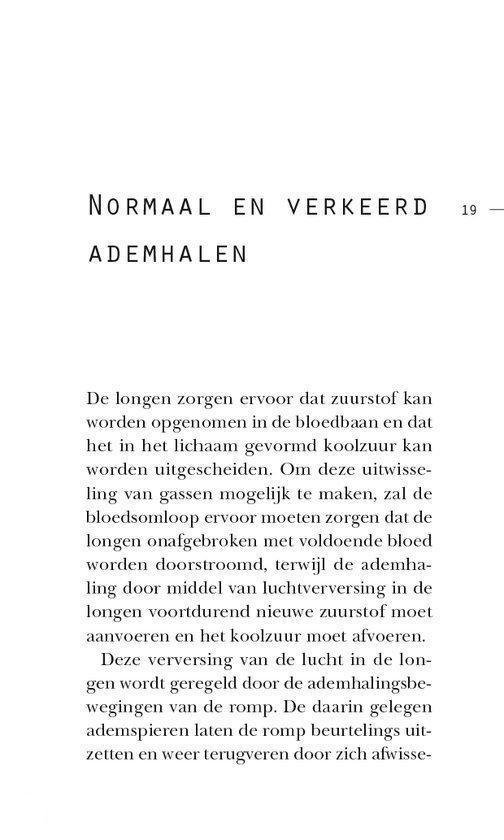 Velen van ons ademen niet op de juiste manier, we gebruiken vaak maar een klein deel van onze longen. Dit komt door stress, een verkeerde houding of te weinig lichaamsbeweging. Maar wat is nu eigenlijk goed of slecht bij de ademhaling en is het oefenen van de ademhaling bevorderlijk voor de gezondheid? Dit boekje verschaft duidelijk inzicht in de juiste manier van ademhalen en biedt oefeningen om deze te corrigeren of te verbeteren. Centraal staat het scherpe onderscheid tussen een normale ademhaling – en een foutieve of gebrekkige ademhaling. Gezondheid en prestatievermogen kunnen worden bevorderd door het corrigeren en oefenen van een juiste ademhaling. Ademen is een autonoom proces en wordt gereguleerd door het zenuwstelsel. Als je overstuur bent, produceer je meer adrenaline waardoor de ademfrequentie en hartslag toenemen. Door je ademhaling te reguleren en tot rust te brengen, wordt het mentale en emotionele evenwicht hersteld waardoor je o.a. veel beter bent opgewassen tegen stress. Jules Parow was praktiserend arts in Noorwegen in een sanatorium voor astmapatiΓ«nten, en directeur van het Instituut voor Functionele Ademtherapie.