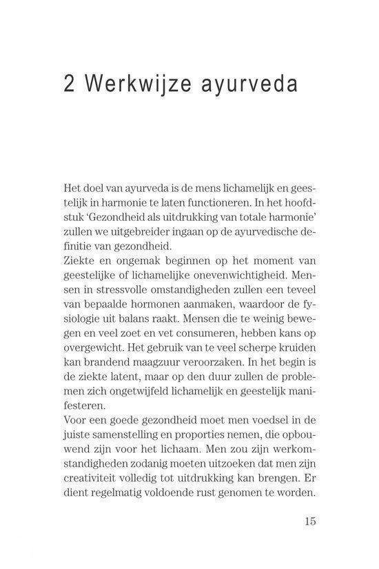 Ayurveda in de praktijk is een praktische introductie tot Ayurveda, het traditionele Indiase systeem van geneeskunde dat gericht is op het bewaren van evenwicht tussen lichaam en geest. Het boek legt de basisprincipes van deze gezondheidsleer uit en laat zien hoe levensstijl, voeding en mentale balans samenhangen met gezondheid. Een belangrijk onderdeel van het boek is de uitleg van de drie dosha’s (vata, pitta en kapha), de fundamentele energieën die volgens de Ayurveda het lichaam en karakter bepalen. De auteurs beschrijven hoe verstoringen in deze balans kunnen leiden tot ziekte en hoe men via voeding, dagelijkse gewoonten en natuurlijke remedies het evenwicht kan herstellen. Daarnaast wordt aandacht besteed aan diagnosemethoden, zoals observatie van lichaamssignalen en leefgewoonten. Het boek benadrukt preventie: gezond leven betekent volgens de Ayurveda vooral het voorkomen van klachten door een bewuste leefwijze. Ook praktische adviezen komen aan bod, zoals voedingsrichtlijnen, kruidengebruik en eenvoudige leefregels die kunnen bijdragen aan vitaliteit en welzijn. Daarmee is het boek vooral bedoeld als toegankelijke gids voor lezers die interesse hebben in holistische gezondheid en natuurlijke geneeswijzen.