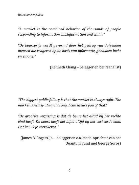 De verhelderende inleidingen en de waardevolle citaten in dit beleggingsboek hebben één duidelijk gemeenschappelijke boodschap: er is maar één iemand die met hart en verstand voor uw geld zal zorgen, en dat bent uzelf.