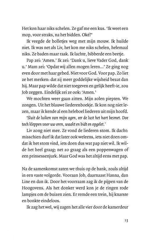 Kiki en haar familie zijn lid van de Noorse Broederschap, een uiterst religieuze groepering die meent het enige ware geloof te belijden; de rest van de mensheid is blind en zal bij de terugkomst van Jezus onverbiddelijk omkomen in een zee van vlammen. Wie uit de gemeenschap treedt, zal verstoten worden. Hun hele jeugd worden Kiki, haar broer en zussen onderworpen aan de strenge tucht van hun vader, een vooraanstaande broeder. De enige mensen bij wie ze zich geborgen voelt, zijn haar opa en de opstandige Liv.