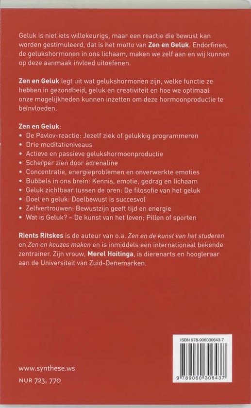 Zen en Geluk legt uit wat gelukshormonen zijn, welke functie ze hebben in gezondheid, geluk en creativiteit en hoe we optimaal onze mogelijkheden kunnen inzetten om deze hormoonproductie te beïnvloeden.