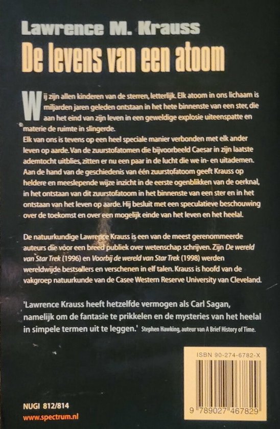 De natuurkundige lawrence krauss is een van de meest gerenommeerde auteurs die voor een breed publiek over wetenschap schrijven. Zijn De wereld van Star Trek (1996) en Voorbij de wereld van Star Trek (1998) werden wereldwijde bestsellers en verschenen in elf talen. Krauss is hoofd van de vakgroep natuurkunde van de Casee Western Reserve University van Cleveland.