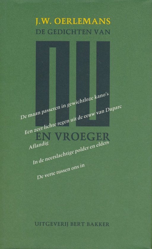 In De gedichten van nu en vroeger verzamelt J.W. Oerlemans een rijke selectie uit zijn poëtische oeuvre, dat zich uitstrekt van de vroege jaren vijftig tot begin jaren negentig. Met gedichten uit bundels als De maan passeren in gewichtloze kano’s, Een zeer lichte regen uit de eeuw van Duparc, Aflandig, In de neerslachtige polder en elders en De verte tussen ons in, biedt deze uitgave een overzicht van zijn literaire ontwikkeling. Oerlemans’ poëzie kenmerkt zich door een subtiele melancholie, een scherp oog voor detail en een diepgaande reflectie op het verglijden van de tijd en de vergankelijkheid van het bestaan. Zijn werk nodigt uit tot contemplatie en biedt een rijke ervaring voor de lezer die zich wil verdiepen in de nuances van het dagelijks leven en de menselijke conditie.