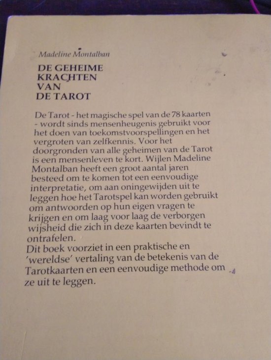 Madeline Montalban heeft een groot aantal jaren besteed om te komen tot een eenvoudige interpretatie, om aan oningewijden uit te leggen hoe het Tarotspel kan worden gebruikt om antwoorden op hun eigen vragen te krijgen en om laag voor laag de verborgen wijsheid te ontrafelen die zich in de kaarten bevindt.