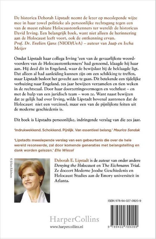 De Amerikaanse historica Deborah Lipstadt noemde haar Engelse collega David Irving “een van de gevaarlijkste woordvoerders van de Holocaustontkenners”. Irving klaagde haar aan wegens smaad.