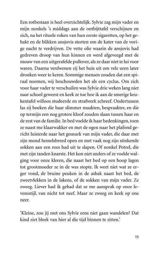 We maken kennis met zijn vader, Pierre, die zijn paar uur oude zoontje in een postzak op zijn fiets langs alle kroegen van het dorp rijdt om hem aan zijn vrienden te tonen; zijn grootmoeder, wier nachtrust al te vaak verstoord wordt door de politie als die weer eens een van haar dronken zonen thuis komt afleveren; en niet te vergeten de werkloze nonkels Potrel, Herman en Zwaren, voor wie een wereldkampioenschap zuipen het hoogst haalbare is en die leven volgens het adagium ‘God schiep de dag en wij slepen ons erdoorheen’.