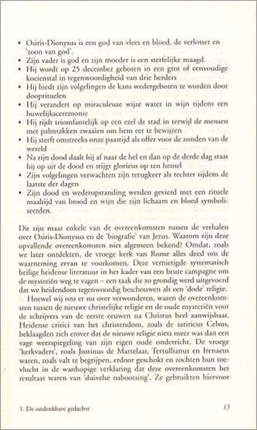 Wist u dat duizenden jaren voor onze jaartelling ‘heidenen’ ook al een Zoon van God vereerden? Wist u dat deze heidense verlosser ook werd geboren als zoon van een maagd op 25 december temidden van herders; dat hij water in wijn wist te veranderen; dat hij stierf en wederopstond met pasen en dat hij zijn lichaam en bloed aan volgelingen aanbood?