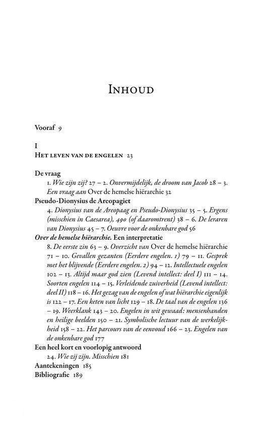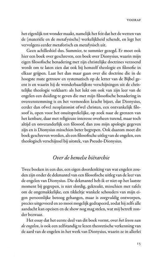 Dit boek maakt de engelen van Dionysius toegankelijk, eerst door een adembenemend essay over ‘het leven van de engelen’, vervolgens door een prachtige vertaling (de eerste in het Nederlands) van dat even wonderbaarlijke als invloedrijke werk ‘Over de hemelse hiërarchie’.