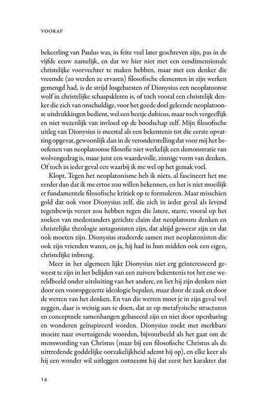 In de geschiedenis van de westerse theologie zijn weinig figuren met meer raadselen omgeven dan de vijfde-eeuwse schrijver die tegenwoordig als Pseudo-Dionysius bekend staat. Wie hij in werkelijkheid geweest is, deze christelijke theoloog en tegelijk neoplatoonse filosoof, die zich in zijn werken voordeed als Dionysius van de Areopaag, een eerste-eeuwse bekeerling van Paulus, is onbekend en dat zal ook wel zo blijven. Niettemin hebben zijn werken een geweldige invloed uitgeoefend op de totstandkoming van de westerse (en de oosterse) theologie en op alle mystieke tradities sinds de vroege middeleeuwen.