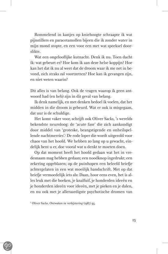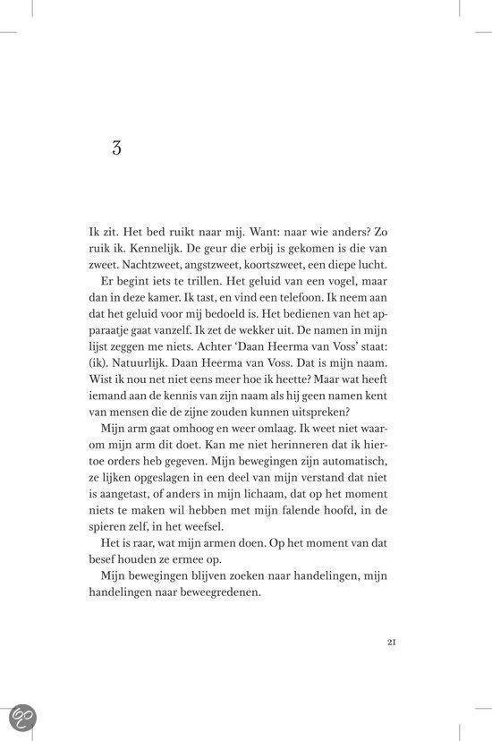 De maanden daarna doet hij ontdekkingen over het vergeten en over de aard van de aandoening die hem trof. Daan Heerma van Voss spaart zichzelf noch de mensen uit zijn leven, en in zijn openhartigheid zoekt hij wrede grenzen op.