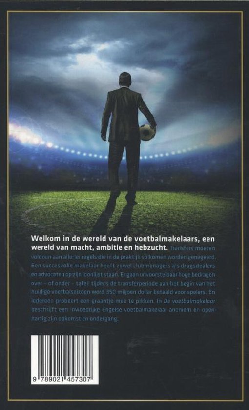 Welkom in de wereld van de voetbalmakelaars, een wereld van macht, ambitie en hebzucht. Transfers moeten voldoen aan allerlei regels die in de praktijk volkomen worden genegeerd. Een succesvolle makelaar heeft zowel clubmanagers als drugsdealers en advocaten op zijn loonlijst staan. Er gaan onvoorstelbaar hoge bedragen over – of onder – tafel: tijdens de transferperiode aan het begin van het huidige voetbalseizoen werd 350 miljoen dollar betaald voor spelers. En iedereen probeert een graantje mee te pikken. In ‘De voetbalmakelaar’ beschrijft een invloedrijke Engelse voetbalmakelaar anoniem en openhartig zijn opkomst en ondergang.