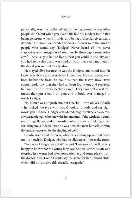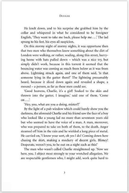 Dodger is a tosher – a sewer scavenger living in the squalor of Dickensian London. Everyone who is nobody knows Dodger. Anyone who is anybody doesn’t. But when he rescues a young girl from a beating, suddenly everybody wants to know him. And Dodger’s tale of skulduggery, dark plans and even darker deeds begins…