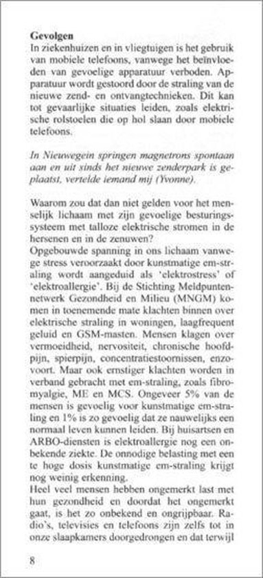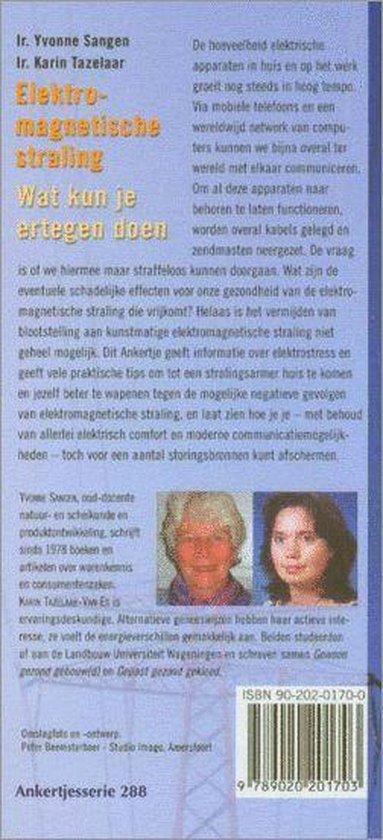 De hoeveelheid elektrische apparaten in huis en op het werk groeit nog steeds in hoog tempo. Via mobiele telefoons en een wereldwijd netwerk van computers kunnen we bijna overal ter wereld met elkaar communiceren. Om al deze apparaten naar behoren te laten functioneren, worden overal kabels gelegd en zendmasten neergezet. De vraag is of we maar straffeloos kunnen doorgaan met deze ontwikkeling. Wat zijn de eventuele schadelijke effecten voor onze gezondheid van de elektromagnetische straling die vrijkomt? Dit Ankertje geeft informatie over elektrostress en geeft vele praktische tips over wat je ertegen kunt doen.