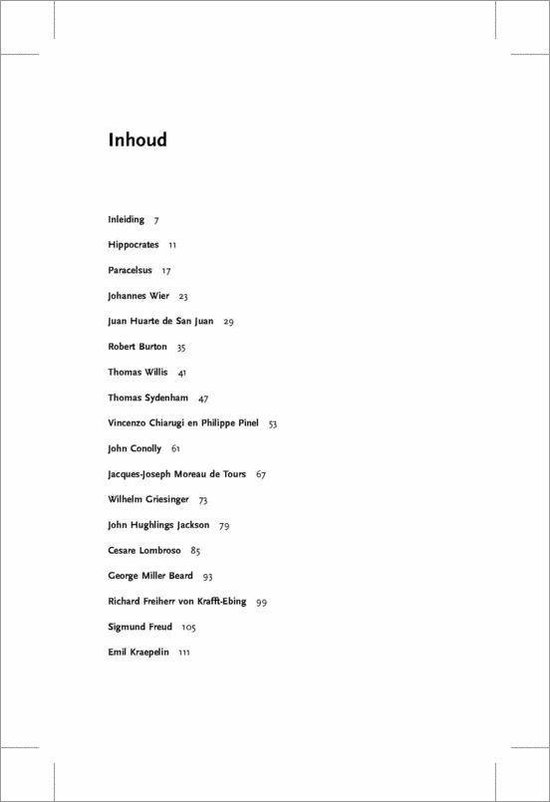 In dit boek schetst de auteur portretten van 24 psychiaters uit vervlogen tijden. Door hen als mens te laten zien, worden hun ideeën over psychiatrie levendiger. Naast het schetsen van portretten, zoekt de auteur parallellen tussen hun werk en de huidige psychiatrie.