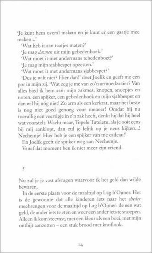 In ‘Feest! Verhalen voor kleine en grote mensen’ bewijst de rasverteller zich opnieuw, in een reeks verhalen die zich telkens afspelen rond een van de feestdagen zoals die rond de voorlaatste eeuwwisseling door de joden in Oost-Europa werden gevierd. Van verhaal tot verhaal wordt de lezer meegevoerd aan de hand van een kleine jongen. ‘Feest! Verhalen voor kleine en grote mensen’ is een feest voor jong en oud: Sjolom Alejchem is nergens moralistisch, altijd vol zelfspot en doorspekt zijn verhalen met liedjes, rijmpjes en grappen zoals die de ronde deden in de wereld waar hij opgroeide.