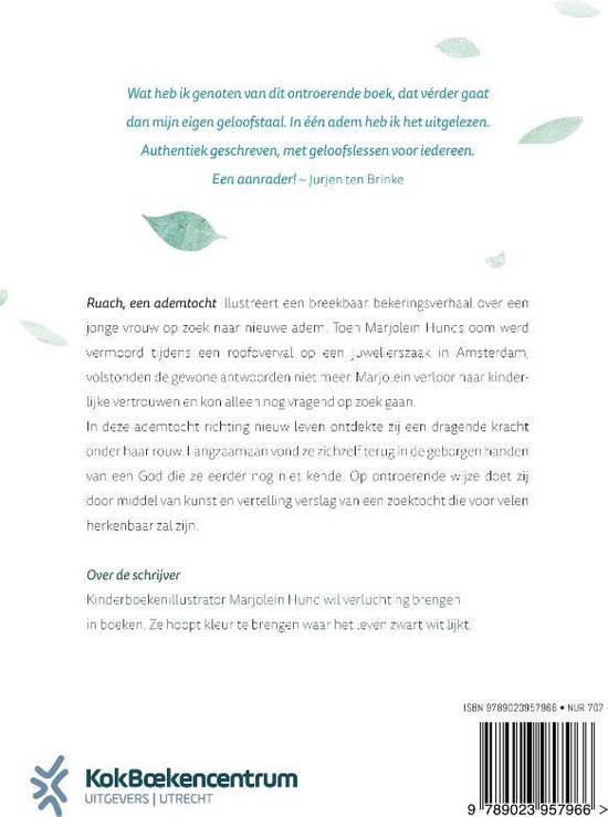 In oktober 2010, tien jaar geleden, werd er een roofoverval gepleegd op de juwelierszaak van de vader en oom van illustratrice Marjolein Hund. Het was het begin van een periode vol vragen, verdriet en pijn. Marjolein verloor haar vertrouwen in de wereld en ging op zoek naar de kern van het leven. Haar gelovige man Gideon en andere christenen in haar omgeving in Amsterdam hielpen haar zich langzaamaan weer veilig te voelen. In ‘Ruach’ doet ze in woord en beeld verslag van haar persoonlijke zoektocht naar God en zichzelf, naar vrede en rust.