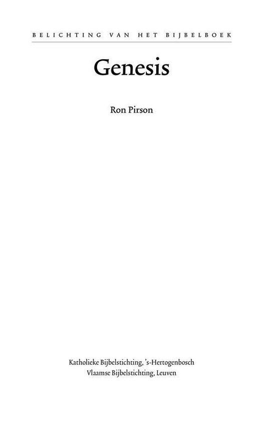 Het boek Genesis is een hoogtepunt van bijbelse vertelkunst en een van de klassiekers uit de wereldliteratuur. Genesis verhaalt de verwekking van hemel en aarde en van de mensheid, en van de wording van Israël binnen die mensheid. In dit commentaar gaat Ron Pirson uit van de tekst van Genesis zoals die nu voor ons ligt. Hij gaat de lezer voor in een zorgvuldige lezing van de tekst, met veel oog voor de literaire compositie en met ruime aandacht voor de personages in het verhaal en hun onderlinge relaties. Waar nodig verheldert aanvullende historische informatie de tekst voor zover deze voor de moderne lezer niet langer verstaanbaar is.