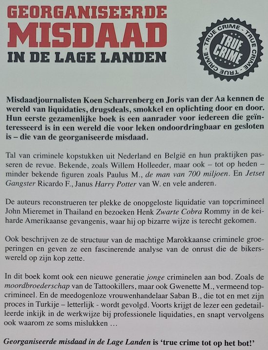Misdaadjournalisten Koen Scharrenberg en collega Joris van der Aa beschrijven op heldere wijze de – snel veranderende – wereld van de georganiseerde misdaad.