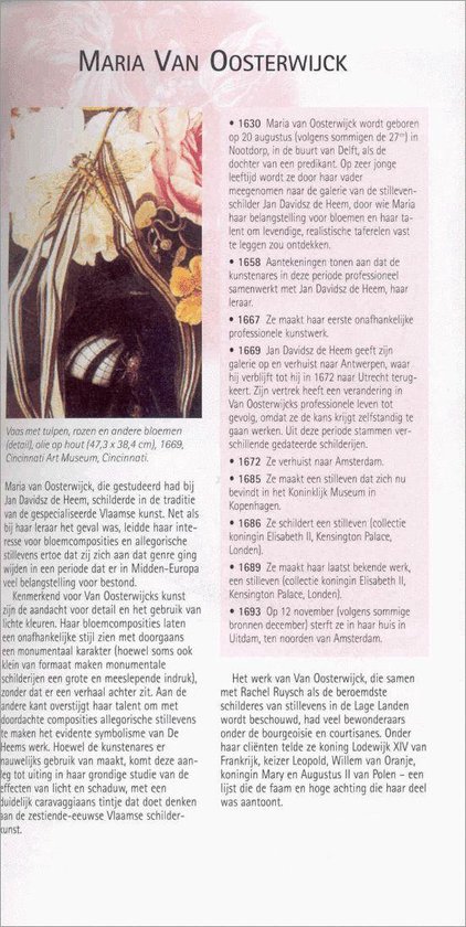 Van iedere kunstenaar zijn schitterende kleurenproducties van hun belangrijkste werken opgenomen, een chronologie en een beknopte levensbeschrijving. De kunstwerken zijn voorzien van een boeiende uitleg van de betekenis, symboliek en gebruikte technieken.