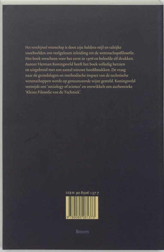 Het verschijnsel wetenschap is door zijn heldere stijl en talrijke voorbeelden een veelgelezen inleiding tot de wetenschapsfilosofie. Het boek verscheen voor het eerst in 1976 en beleefde elf drukken. Auteur Herman Koningsveld heeft het boek volledig herzien en uitgebreid met een aantal nieuwe hoofdstukken. De vraag naar de grondslagen en methodische impact van de technische wetenschappen wordt op genuanceerde wijze gesteld. Koningsveld vermijdt een ‘sociology of science’ en ontwikkelt een authentieke ‘Kleine Filosofie van de Techniek’.
