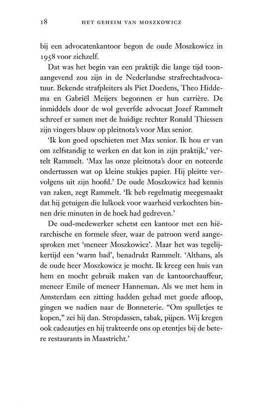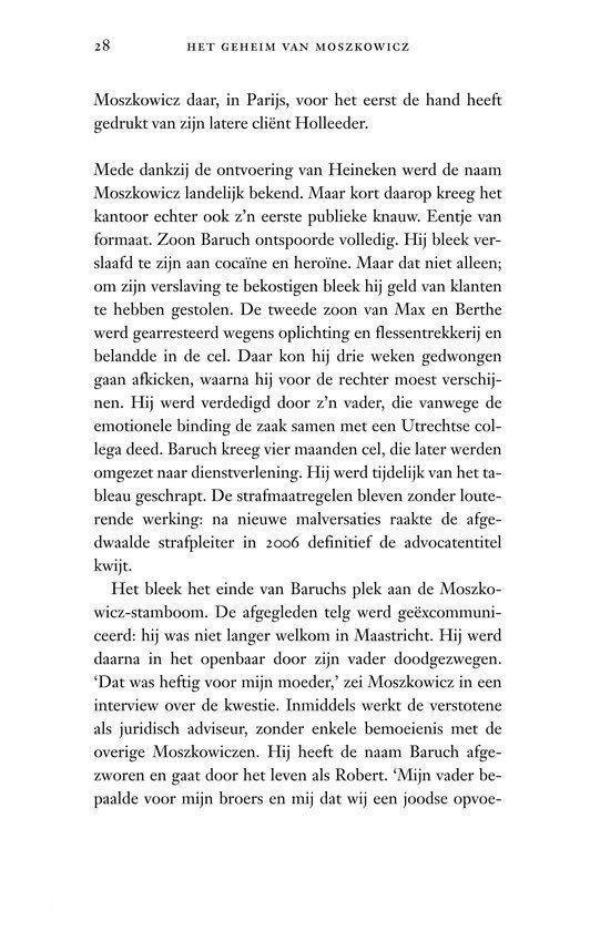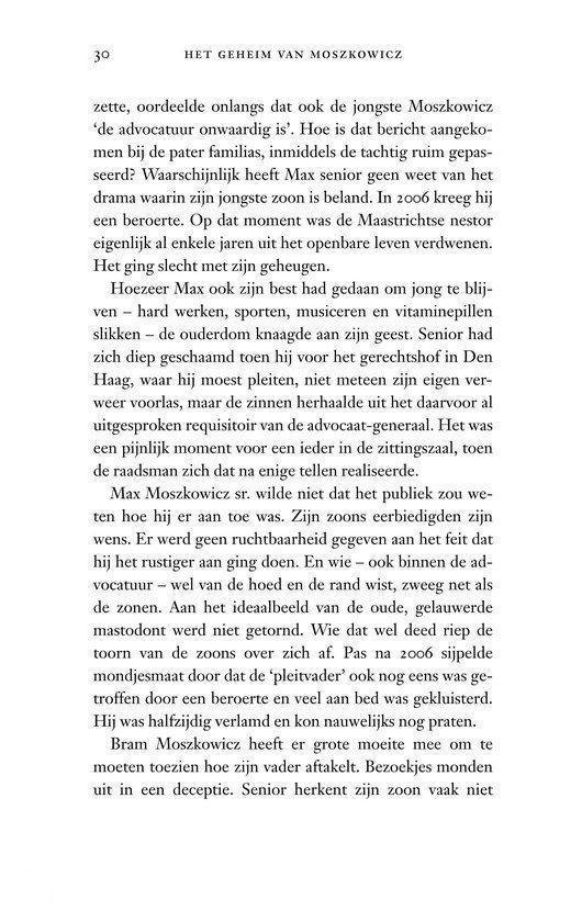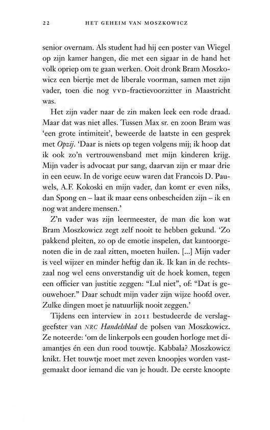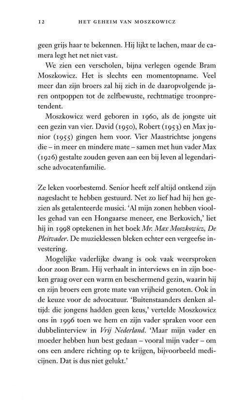 Dat beeld is echter hard onderuit gehaald; een haperende boekhouding, ontevreden cliënten en de Belastingdienst die miljoenen euro’s blijkt te vorderen. Tot overmaat van ramp werd Moszkowicz eind oktober 2012 van het tableau geschrapt. Geheel in stijl bestrijdt Moszkowicz de kritiek te vuur en te zwaard. Maar hoe heeft het zover kunnen komen? En lukt het hem om overeind te krabbelen? Vrij Nederland-journalisten Marian Husken en Harry Lensink gingen op zoek naar het geheim van Moszkowicz.