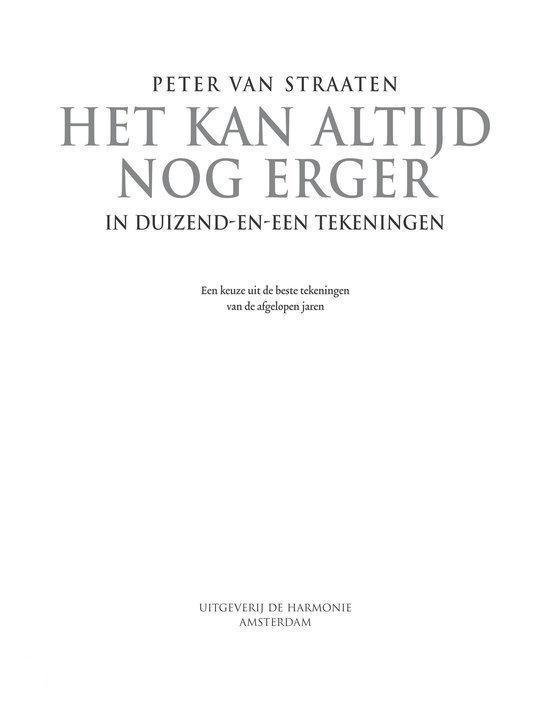 In Het kan altijd nog erger in duizend-en-een tekeningen laat Peter van Straaten op zijn volstrekt unieke wijze veel Hollands leed passeren: failliete ondernemers, overspelige echtgenoten, klierende kinderen en pinnige bejaarden, niemand ontkomt aan zijn messcherpe kroontjespen.
