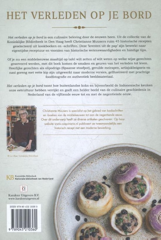 In Het verleden op je bord heeft Christianne Muusers ruim 45 recepten uit de interessante en gevarieerde verzameling historische boeken over koken van de Koninklijke Bibliotheek geselecteerd en bewerkt voor de moderne keuken.