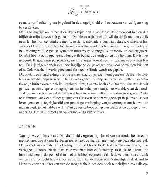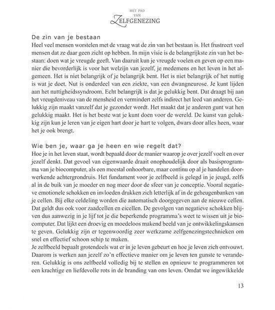Jezelf genezen is mogelijk. Steeds meer mensen hebben behoefte aan inzicht in de werkelijke oorzaak van hun ziekte en de manier waarop zij zichzelf kunnen genezen. Zelfgenezing is de hoogste vorm van genezing. Daarnaast biedt zelfgenezing de beste garantie tegen herhaling van ziekte. Om jezelf te kunnen genezen, heb je moed, inzicht en de juiste technieken nodig. In Het Pad van Zelfgenezing worden deze aangereikt. De meest effectieve methodes van zelfgenezing van de afgelopen duizenden jaren zijn samengevoegd tot een compact en bruikbaar geheel. Daarnaast zijn de ontdekkingen van de moderne wetenschap beschreven en worden de nieuwste spirituele inzichten ontsluierd. Het Pad van Zelfgenezing is een uitermate boeiende en spannende reis door jezelf waarbij je hart de meest krachtige en onuitputtelijke bron van zelfgenezing is.