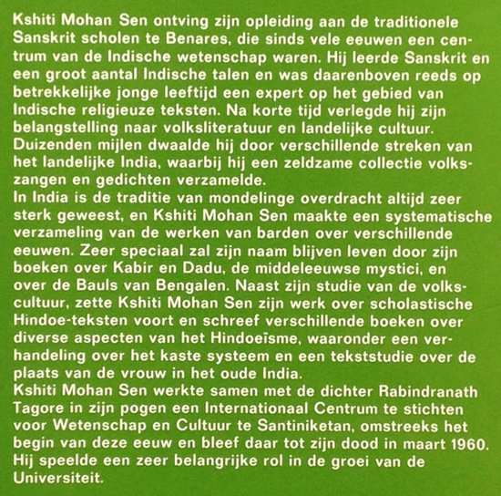Kshiti Mohan Sen kreeg zijn opleiding aan de traditionele Sanskriet-scholen te Benares, sinds vele eeuwen centra van de Indiase wetenschap. Hij leerde Sanskriet en een groot aantal andere Indiase talen en was bovendien al op betrekkelijk jeugdige leeftijd expert op het gebied van Indiase religieuze teksten. Ook verdiepte hij zich in de uitgebreide orale traditie en volkscultuur van het oude India en reisde daarvoor vele jaren door het Indiase subcontinent. Dit boek is, zo schrijft de auteur in zijn voorwoord, uitdrukkelijk geschreven als een inleiding op het hindo6isme. Het is onmogelijk om in detail recht te doen aan de vele denkrichtingen die in de loop der tijden binnen deze oudste wereldgodsdienst zijn ontstaan. Niettemin is de auteur erin geslaagd een helder beeld te schetsen van de hoofdlijnen van het hindoeïsme, een beeld dat zeker tegemoet komt aan de behoefte van het westerse lezerspubliek dat geïnteresseerd is in oosterse religies.