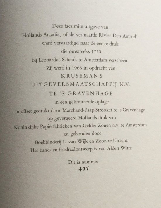 Facsimile uitgave van: “Hollands Arcadia Of de vermaarde Rivier Den Amstel”