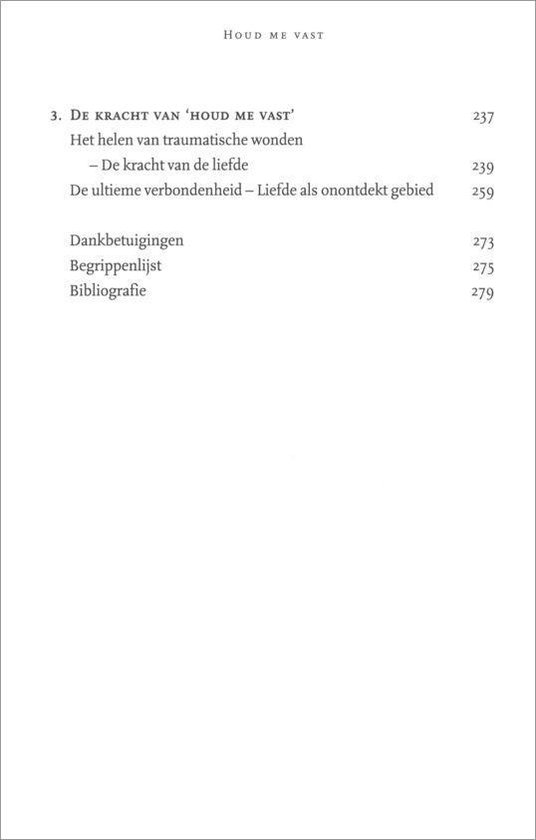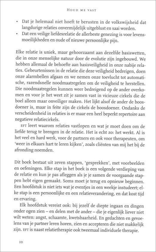 In Houd me vast maakt Sue Johnson de lezer deelgenoot van haar baanbrekende en buitengewoon succesvolle programma voor het creΓ«ren van hechte en veilige relaties. In zeven helende gesprekken biedt ze inzicht in de bepalende momenten in uw relatie en helpt ze u die momenten een nieuwe vorm te geven en zo een veilige en blijvende band te creΓ«ren.