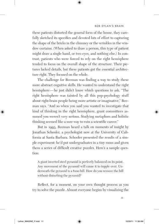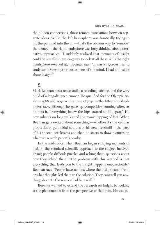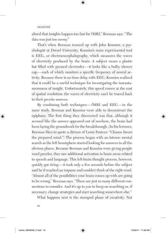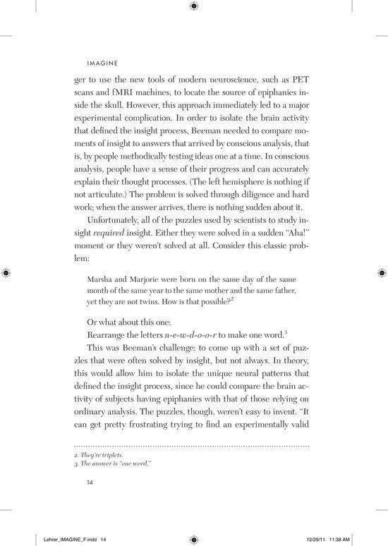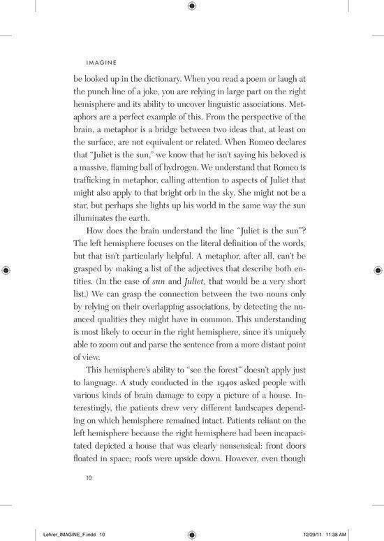 The profound mysteries of creative thought have long intimidated the world’s finest brains. How do you measure the imagination? How do you quantify an epiphany? These daunting questions led researchers to neglect the subject for hundreds of years. In Jonah Lehrer’s ambitious and enthralling new book, we go in search of the epiphany. Shattering the myth of creative ’types’, Lehrer shows how new research is deepening our understanding of the human imagination. Creativity is not a ‘gift’ that only some possess. It’s a term for a variety of distinct thought processes that we can all learn to use more effectively. Some acts of imagination are best done sipping espresso in a crowded cafe, while others require long walks in a quiet park. Lehrer helps us fit our creative strategies to the task at hand. The journey begins with the fluttering of neurons in the prefrontal cortex, before moving out to consider how this new science can also make neighbourhoods more vibrant, companies more productive and schools more effective. We’ll learn about Bob Dylan’s writing habits and the drug addiction of poets. We’ll see why Elizabethan England experienced a creative explosion, and how Pixar designed its office space to get the most out of its talent. Collapsing the layers separating the neuron from the finished symphony, Imagine reveals the deep inventiveness of the human mind and its essential role in our increasingly complex world.