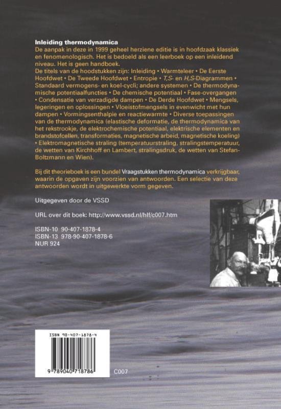 Inleiding Warmteleer De Eerste Hoofdwet De Tweede Hoofdwet Entropie T,S- en H,S-Diagrammen Standaard vermogens- en koel-cycli; andere systemen De thermodynamische potentiaalfuncties De chemische potentiaal Fase-overgangen Condensatie van verzadigde dampen De Derde Hoofdwet Mengsels, legeringen en oplossingen Vloeistofmengsels in evenwicht met hun dampen Vormingsenthalpie en reactiewarmte Verspreide onderwerpen (Elastische deformatie, de thermodynamica van het rekstrookje, de elektrochemische potentiaal, elektrische elementen en brandstofcellen, transformaties, magnetische arbeid, magnetische koeling) Elektromagnetische straling (temperatuurstraling, stralingstemperatuur, de wetten van Kirchhoff en Lambert, stralingsdruk, de wetten van Stefan-Boltzmann en Wien).