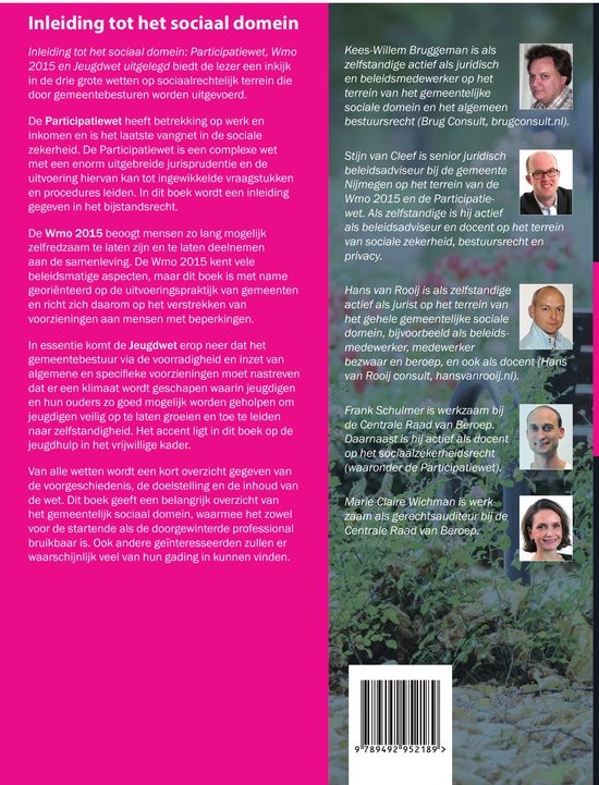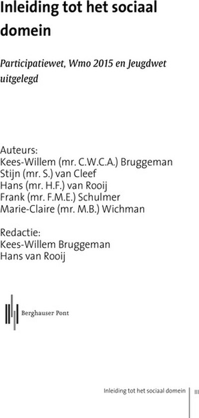 Inleiding tot het sociaal domein: Participatiewet, Wmo 2015 en Jeugdwet uitgelegd biedt de lezer een inkijk in de drie grote wetten op sociaalrechtelijk terrein die door gemeentebesturen worden uitgevoerd.