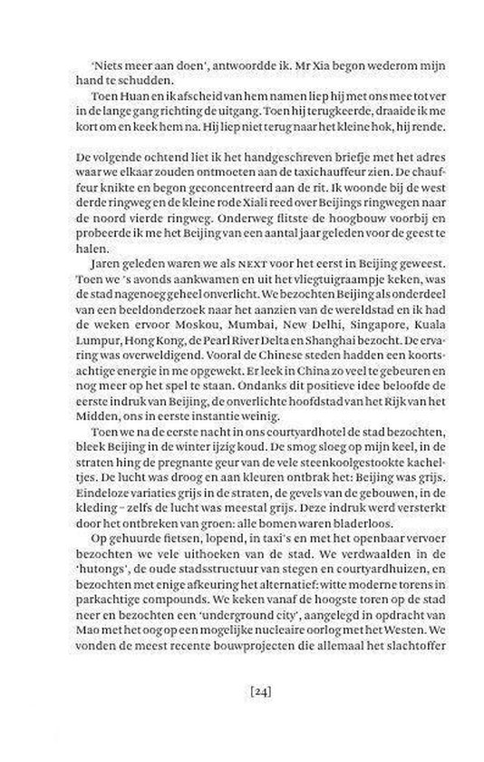 Je kunt China niet veranderen, China verandert jou is Van de Waters persoonlijke, ontwapenende en bij vlagen hilarische verslag van deze boeiende en confronterende zoektocht naar een authentieke architectuur. Hoe houdbaar is een westers ontwerpend vermogen in een volstrekt andere culturele context als de Chinese?