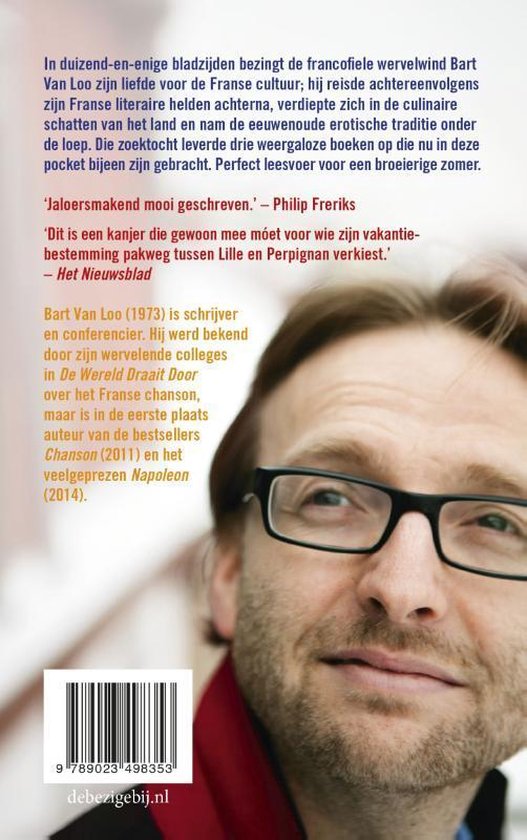 In duizend-en-enige bladzijden bezingt de francofiele wervelwind Bart Van Loo zijn liefde voor de Franse cultuur; hij reisde achtereenvolgens zijn Franse literaire helden achterna, verdiepte zich in de culinaire schatten van het land en nam de eeuwenoude erotische traditie onder de loep. Die zoektocht leverde drie weergaloze boeken op die in deze pocket bijeen zijn gebracht. Perfect leesvoer voor een broeierige zomer.