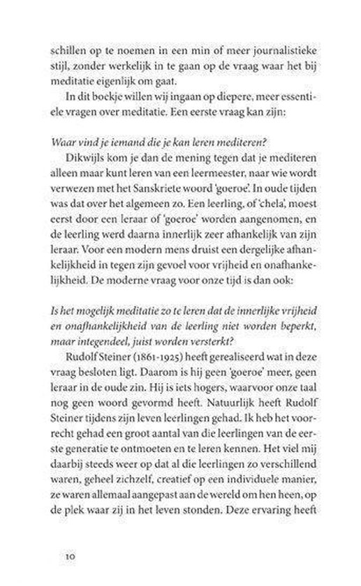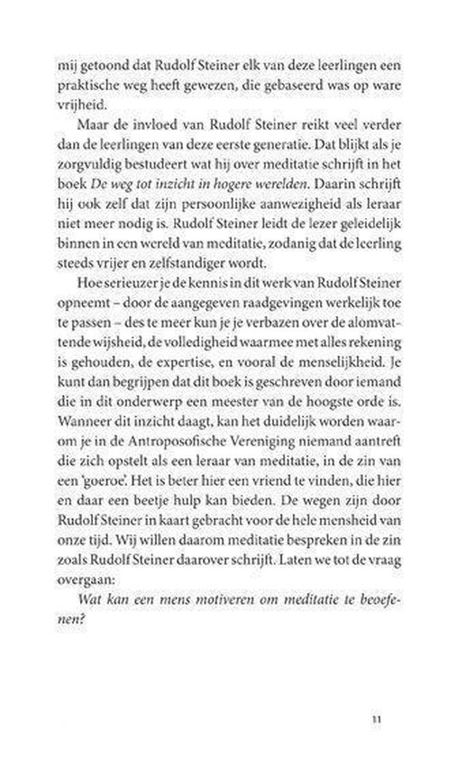 In deze openbare voordracht, die Ernst Katz in 1974 hield voor de Anthroposophical Society in America te New York, geeft de auteur op beknopte en heldere wijze antwoorden op vragen die verbonden zijn met het thema meditatie. Vragen als: wat wil je met meditatie bereiken? Heb je een leermeester of goeroe nodig? Hoe kun je je het beste voorbereiden?