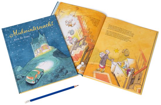 ‘Midwinternacht’ van Rick de Haas is als een warme deken op een koude winterdag. Zijn prachtige illustraties spelen met licht en donker, door het lichte huis van oma en de donkere nacht van de familie onderweg.