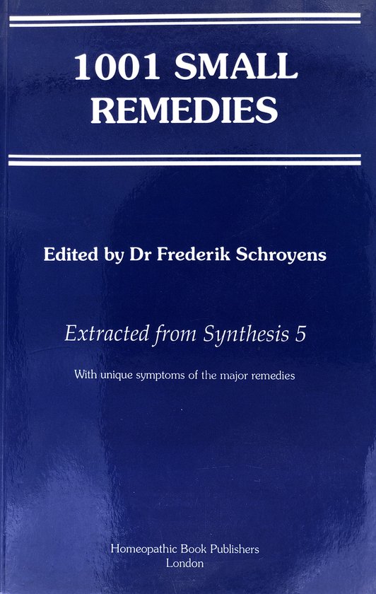 1001 Small Remedies is an English-language homeopathy reference book compiled by Frederik Schroyens that serves as an extensive repertory of homeopathic remedies and their associated symptoms. This hefty volume, spanning well over 1,500 pages, is designed as a practical tool for homeopathic practitioners, students, and serious hobbyists who work with classical homeopathy and need a broad database of symptom–remedy relationships to guide case analysis and prescription.