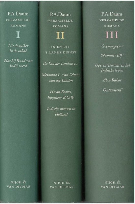 Deel I: Uit de suiker in de tabak; Hoe hij Raad van Indie werd. Deel II: In en uit ’s lands dienst; De Van der Lindens c.s.; Mevrouw L. van Velton-van der Linden; H. van Brakel, Ingenieur B.O.W.; Indische mensen in Holland. Deel III: Goena goena; ‘Nummer Elf’; ‘Ups’ en ‘Downs’ in het Indische leven; Aboe Bakar; ‘Ontzusterd’.