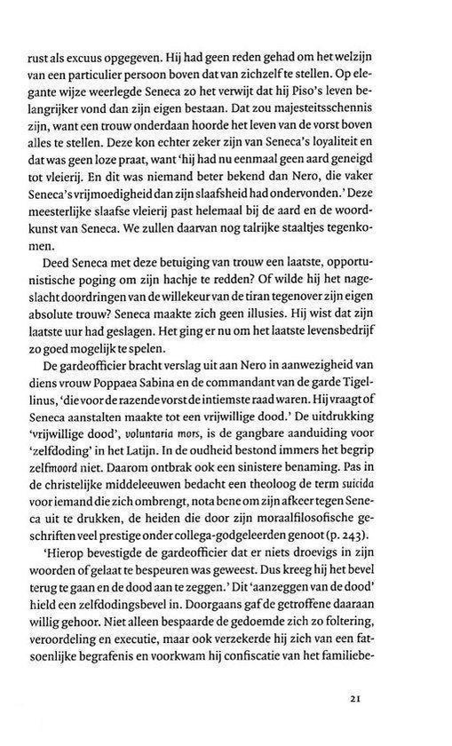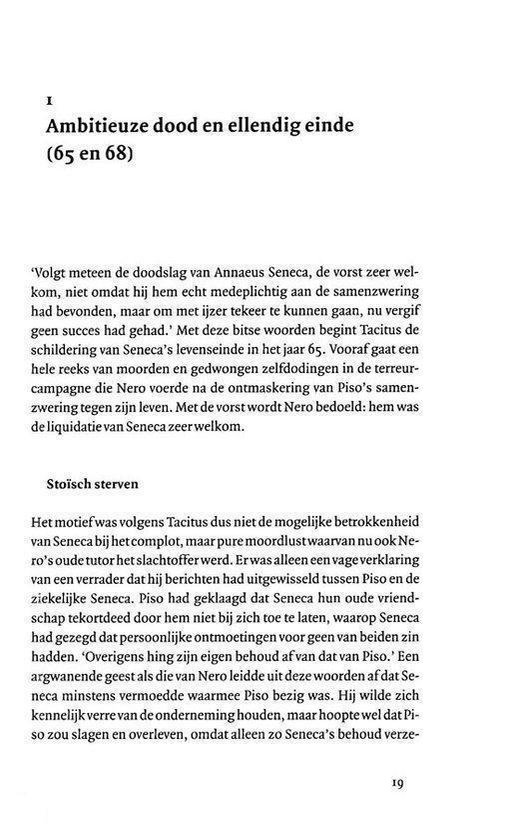 Lange tijd praatte Seneca Nero s wandaden goed. Pas toen de jonge keizer hem opdroeg zichzelf te doden, nam hij volledig afstand van de despoot. Seneca maakte van zijn levenseinde een heropvoering van Socrates dood en werd het Romeinse icoon van filosofisch martelaarschap. Enkele jaren later sloeg Nero de hand aan zichzelf. Zijn zelfdoding gold als het verdiende ellendige einde van een tiran.