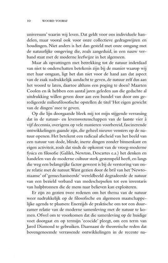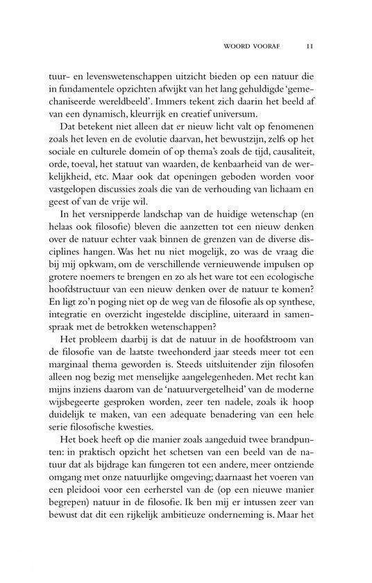 Het is daarom van eminent belang dat in de wijsbegeerte aandacht besteed wordt aan de spectaculaire ontwikkelingen die zich de afgelopen decennia in de natuurwetenschappen hebben voorgedaan. Daar tekent zich namelijk een kijk op de natuur af die fundamenteel afwijkt van het lang gehuldigde ‘gemechaniseerde wereldbeeld’, te weten het beeld van een dynamisch, creatief en kleurrijk universum. Dat betekent niet alleen dat veel filosofische kwesties een nieuwe setting krijgen, maar ook dat nieuwe openingen ontstaan voor vastgelopen discussies zoals die van de verhouding van lichaam en geest of van de vrije wil. En uit praktisch oogpunt zou zo’n nieuw zicht op de natuur kunnen bijdragen aan een andere, meer zorgzame en sparende omgang met onze natuurlijke omgeving.