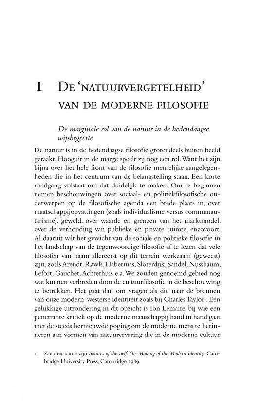 De natuur speelt in de hedendaagse filosofie nog slechts een marginale rol. Overwegend gaat het momenteel in filosofische discussies om menselijke aangelegenheden. Toch zijn op de achtergrond daarvan opvattingen omtrent de aard van de werkelijkheid waarin wij leven steeds aanwezig.