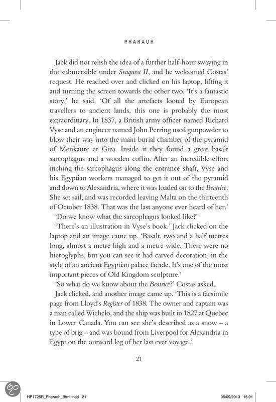 1334 BC: Akhenaten the Sun-Pharoah rules supreme in Egypt. The young Tutahkhamun is groomed to be his successor. But then Akhenaten disappears and his legacy is seemingly swallowed up by the sands that lie under modern Cairo and the great pyramids of Giza …AD 1885: A half-crazed man appears claiming to know of a vast lost labyrinth beneath modern Cairo, of canals and palaces and tombs. His story won’t be believed for almost thirty years, with the discovery of Tutahkhamun’s tomb in 1924. Present-day: Jack Howard and his team are excavating one of the most amazing underwater sites they have ever encountered. They hear the story of the crazed engineer. What follows is a rollercoaster ride of adventure and action, as they dive into the Nile into a world three thousand years back in history, inhabited by a people who have sworn to guard the greatest secret of all time…