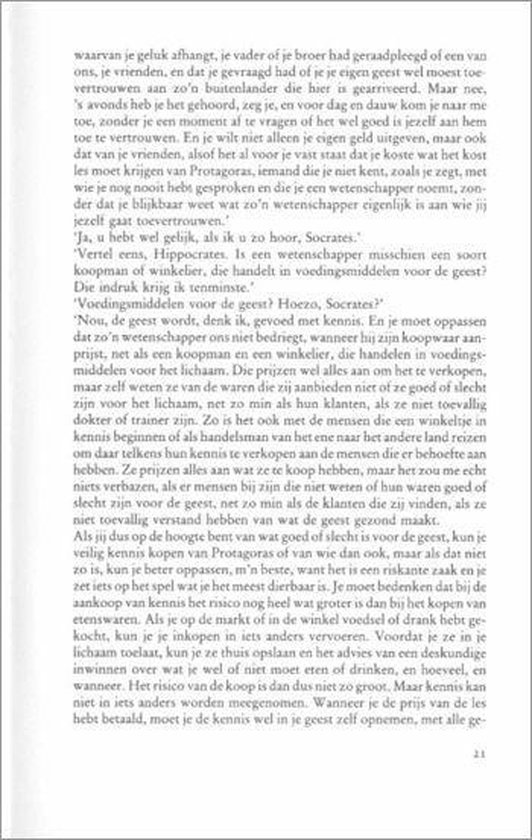 De Griekse filosoof Plato is vooral schrijver. In een schitterende stijl geeft hij uitdrukking aan eigen emoties. In zijn dialogen is hij’ in feite in gesprek met zichzelf en probeert hij op meeslepende wijze een innerlijk conflict op te lossen.
