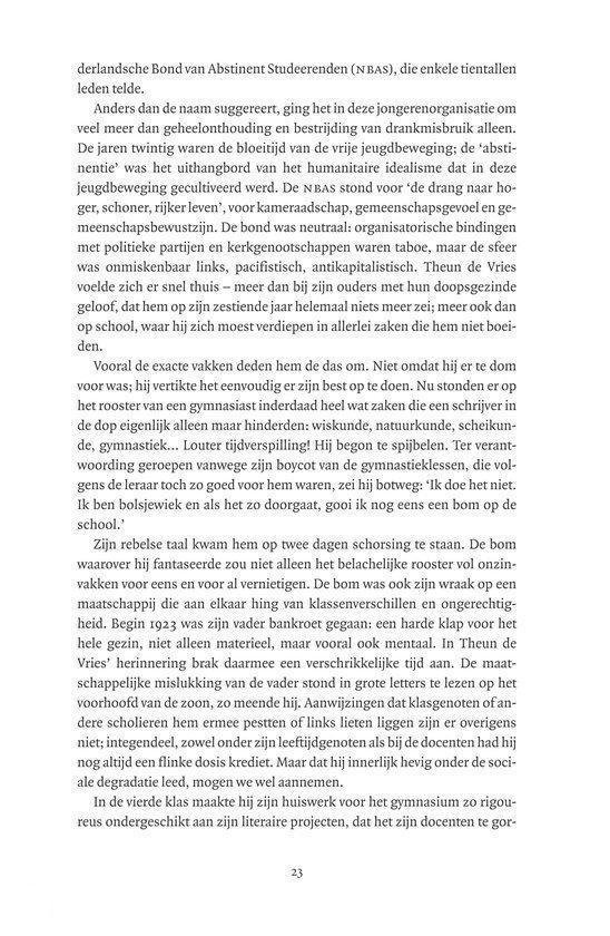 Acht jaar na De Vries overlijden overziet Jos Perry met Revolte is leven voor het eerst leven en werk van een geëngageerd, gedreven schrijver als geheel. De rode draad is de vraag in hoeverre literatuur en politiek elkaar in zijn leven in de weg zaten maar hem ook juist inspireerden.
