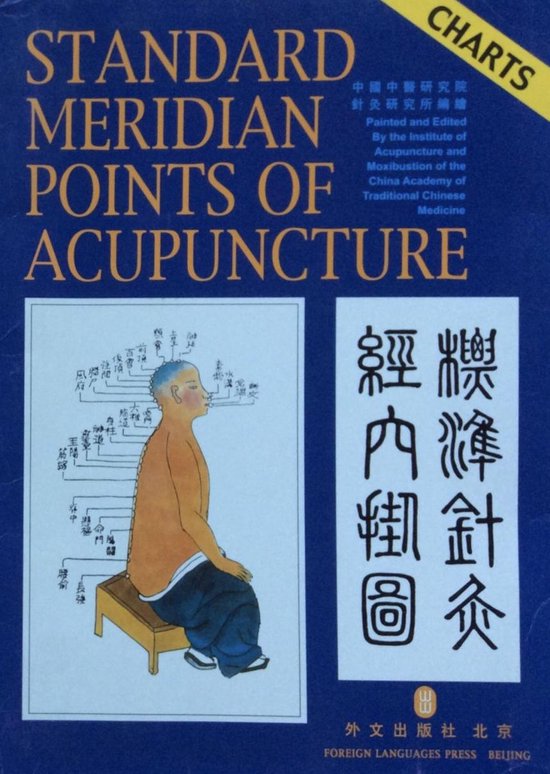 The charts respectively show names and locations of meridians and acupoints on the front, back and lateral sides of the human body, along with the international standard nomenclature and alphameric code. The booklet accompanying the charts describes in detail names and locations of 409 points (361 meridian points and 48 extra points) to facilitate the use of the charts.