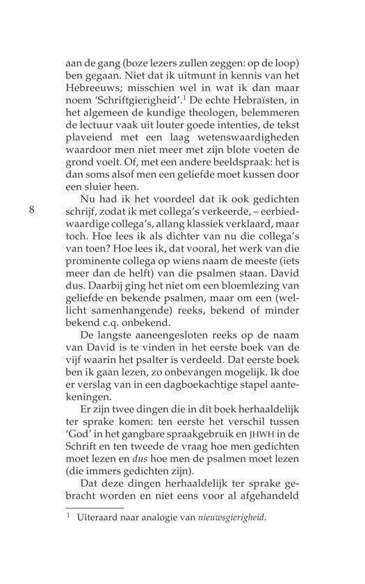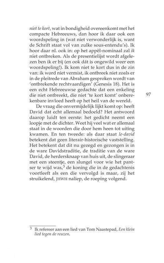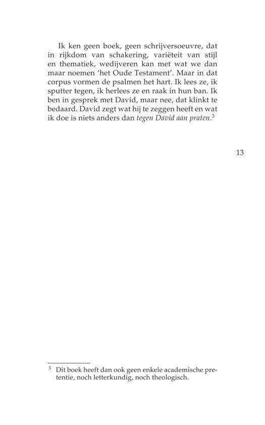 Menige dichter heeft de psalmen willen herdichten. Ze werden dan geactualiseerd, eigentijds onder woorden gebracht, ontdaan van hun archaïsche inkleding. Het resultaat was wisselend, maar altijd minder dan het origineel dat sinds een paar millennia in de bijbel staat. Hertalen wordt al gauw herhalen op een lager niveau. Ik voel geen neiging daartoe. Wat er nog het dichtste bij kwam was mijn aandeel in de berijming van die oude semietische gedichten, een hachelijke onderneming met soms goed zingbaar